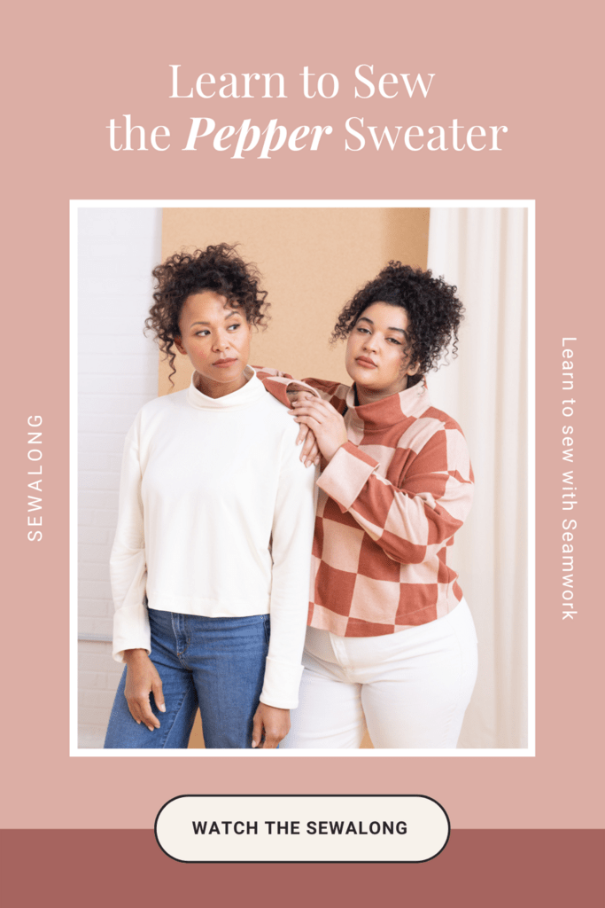 Master the art of creating a cozy turtleneck sweater in this online sewing class featuring the Pepper pattern. Perfect for beginners, this course teaches you how to craft a stylish, oversized pullover with a dramatic collar and wide cuffs. You'll learn pattern preparation, fit adjustments, and professional construction techniques. Create your perfect sweater using knit fabrics like sweatshirt fleece or sweater knits.