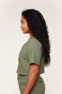 The Adria top is a cropped woven shirt, designed specifically for wearing with high-rise pants and skirts. With a relaxed fit, Adria features front and back waist darts. Use the pattern to create a minimalist chic look or as a blank canvas for inspiring prints and trims.