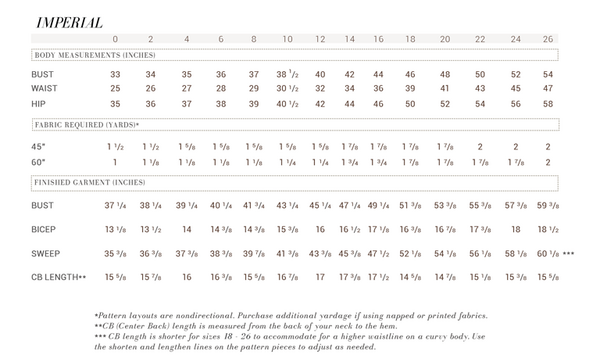 We want to help you achieve the best fit possible so you can sew garments you truly love. Our fit guides are designed to help you better understand the fit and details of each pattern. Use fit guides in conjunction with the finished measurement chart to better understand the ease and intended fit of each pattern.