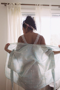 All-purpose polyester sewing thread, 3 yards of 1/2” bias tape, hand-sewing needle, one size 3 sew-on snap. Optional: 2 yards of sheer weight interfacing.