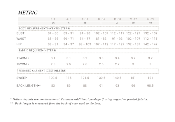 Refer to size chart for amount of fabric needed for your size.
