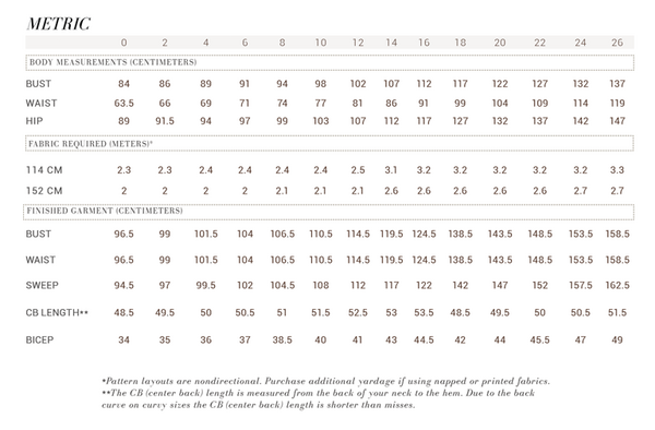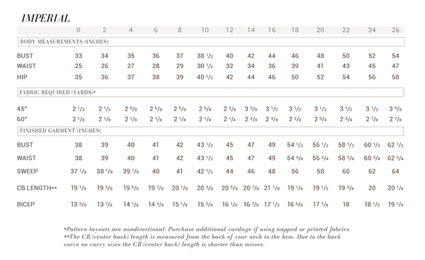 We want to help you achieve the best fit possible so you can sew garments you truly love. Our fit guides are designed to help you better understand the fit and details of each pattern. Use fit guides in conjunction with the finished measurement chart to better understand the ease and intended fit of each pattern.