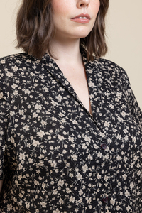 Eden is a classic button-up shirt with a modern touch. It has a slight A-line shape with a V-neckline, short sleeves, and a shawl collar finished with clean facings at the center front. The curved hemline and French darts add just the right amount of shaping. Whether you dress it up or keep it casual, Eden is the kind of versatile shirt you’ll reach for again and again.