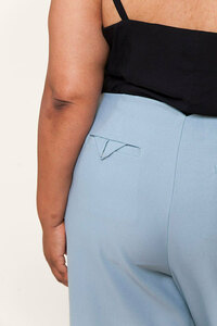 Lightweight to medium weight stretch woven trouser fabrics with at least 5% stretch, such as wool, chino, and suiting.
