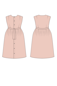 Add a touch of vintage charm to your wardrobe with the Hill dress. This button-front dress features a high, round neckline, slightly extended shoulders, and an A-line skirt. Waist and shoulder darts on both the front and back bodice offer a flattering, tailored fit and the waist tie provides additional definition. The faced neckline and center front add a polished finish, while in-seam pockets offer practicality. Sew this timeless dress in a floral lawn for the ultimate sundress or make it in linen to let the details and silhouette shine.