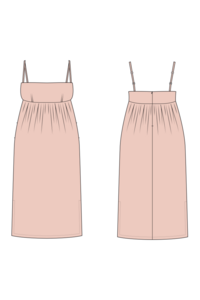 Leighanne is a dreamy empire-waist dress with a gathered skirt. Clustered darts give the lined bodice a tailored appearance, and the skirt has princess seams and is finished with a faced hem and side slits. The double straps on the front add a flirty detail, and the adjustable strap on the back ensures a comfortable fit. This dress closes with an invisible zipper and the skirt has side seam pockets.