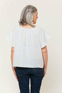 The Loretta top is a pull-over design with both a blouse and tunic option. This easy-to-make top features dramatic flutter sleeves and a convertible off-the-shoulder or scoop neckline.
