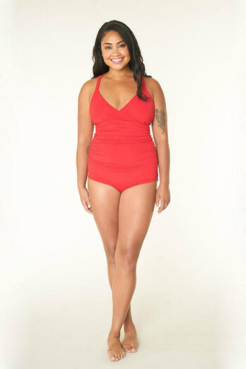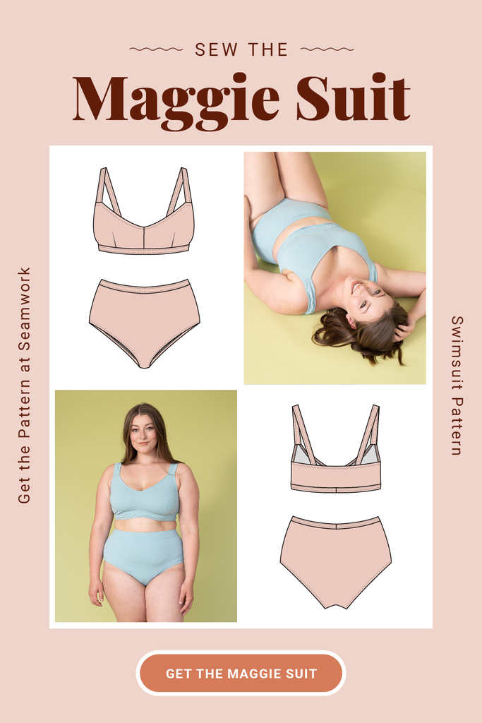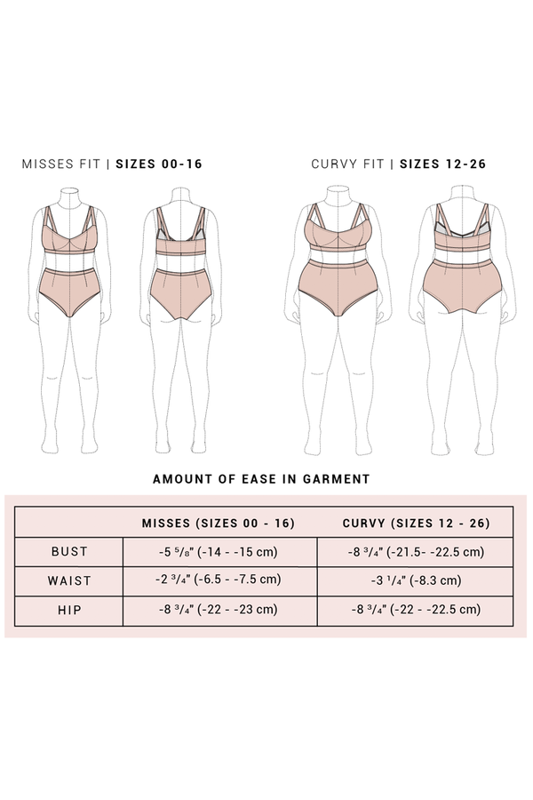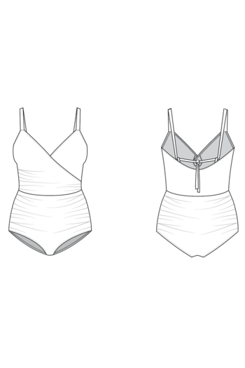 Nylon Lycra swimwear fabrics with 4-way stretch and 60% - 80% stretch. Fabrics with 2-way stretch will not work for this pattern.