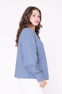 Laurel wears a size 14 from the 12-30 size range and reduced the bust 1 1/4" and the hip1/2", we also added to the cuff width.