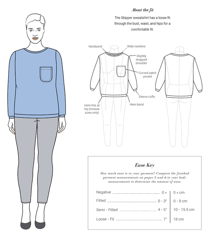 Medium to heavyweight sweatshirt knits with at least 5% stretch, such as sweatshirt fleece, French terry, terry cloth, or sweater knits. Optional: Ribbing for the sleeve cuffs, neckband, and hem band.