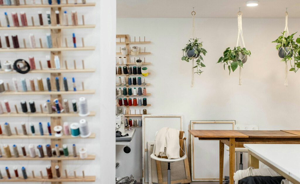 In small spaces, furniture that serves multiple purposes is a game changer. A foldable cutting table can save space while staying functional, and storage ottomans can double as seating. Look for desks with built-in storage or consider rolling carts to keep tools and supplies organized.