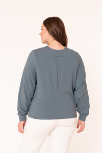 Medium weight knit fabrics with at least 20% stretch, such as French terry, ponte, double knit, and sweater knit.