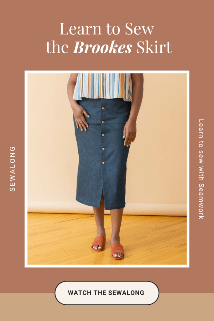 Create the perfect denim skirt in this comprehensive online sewing class featuring the Brookes Skirt pattern. This course teaches you essential techniques for working with stretch denim, including button plackets, jean-style pockets, and professional topstitching. You'll master skills like installing belt loops, creating a faced waistband, and achieving the perfect fit. Perfect for intermediate sewists ready to tackle a classic wardrobe staple. Learn to construct a midi-length skirt that combines style with practical features like split hems and scoop pockets.