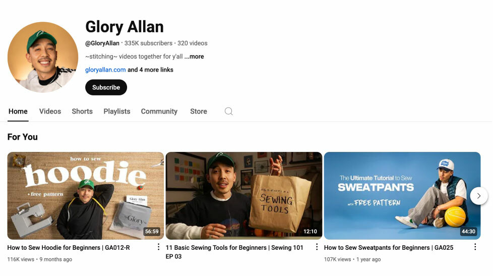 If you’re ready to take the plunge, follow Glory Allan on YouTube, TikTok, Instagram, and Pinterest (@gloryallan) for beginner-friendly tutorials and plenty of sewing inspiration.