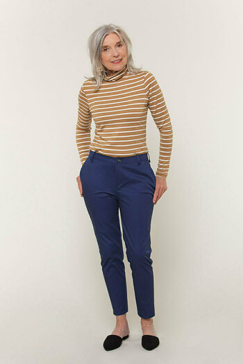 Lightweight to medium weight stretch woven trouser fabrics with at least 5% stretch, such as wool, chino, and suiting.