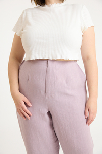 Medium weight woven fabrics such as cotton twill, chino, linen, linen blends, denim, and suitings.