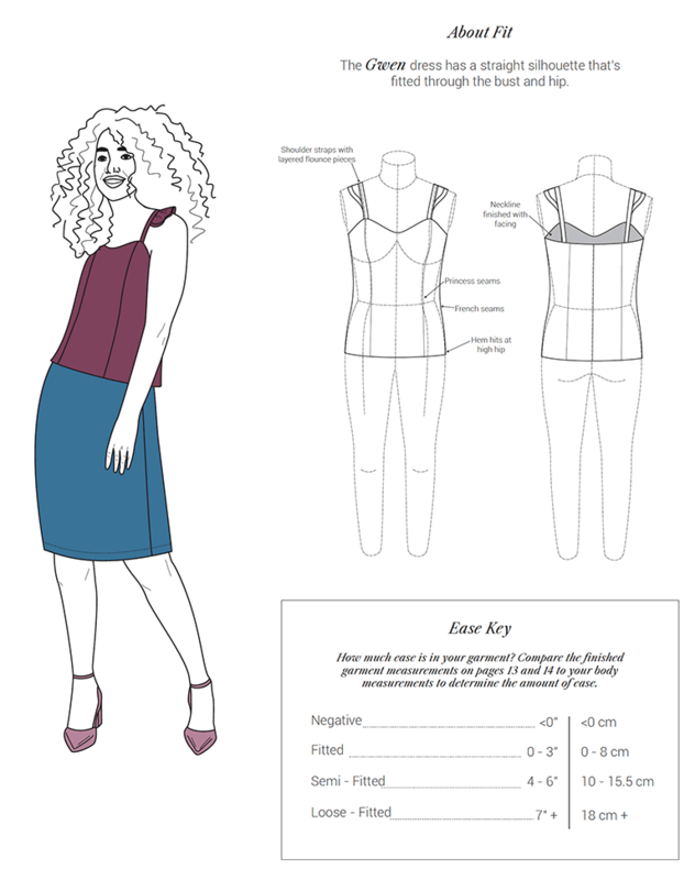 We want to help you achieve the best fit possible so you can sew garments you truly love. Our fit guides are designed to help you better understand the fit and details of each pattern. Use fit guides in conjunction with the finished measurement chart to better understand the ease and intended fit of each pattern.