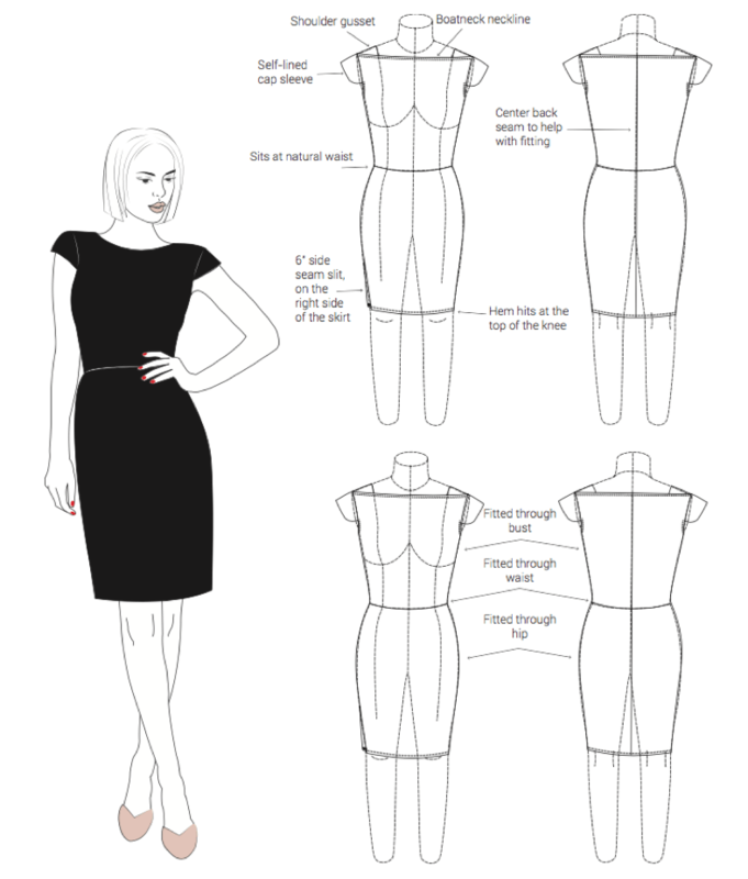 Ida is a flattering, figure-hugging dress that hits just above your knee. With such a simple pattern, the art is in the details. Ida has a boat-neck neckline, with shoulder gussets to keep the neckline in place and prevent it from stretching.