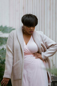 Ashleigh is wearing a size XL Jill coatigan. Her measurements are 48", 41, 50".