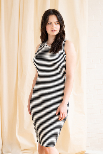 The Lane dress is a body-skimming knit dress that hugs your curves in all the right places. Lane’s column dress design gets a bodycon twist with the addition of wide waist ties. A shallow scoop neckline and side slits finish off this show-stopping dress.