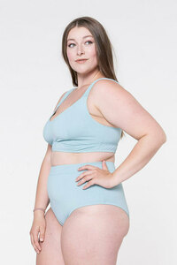 Swimwear lining fabric with 4-way stretch and 60% - 80% stretch. Lining fabrics with 2-way stretch will not work for this pattern.