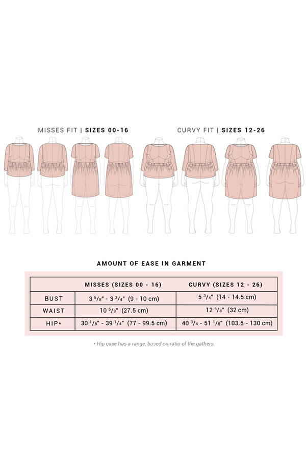 We want to help you achieve the best fit possible so you can sew garments you truly love. Our fit guides are designed to help you better understand the fit and details of each pattern. Use fit guides in conjunction with the finished measurement chart to better understand the ease and intended fit of each pattern.