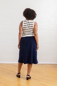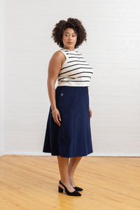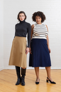 Sawyer is a midi-length skirt that’s really fun to sew, and it pairs so well with your favorite tee, blouse, or camisole.