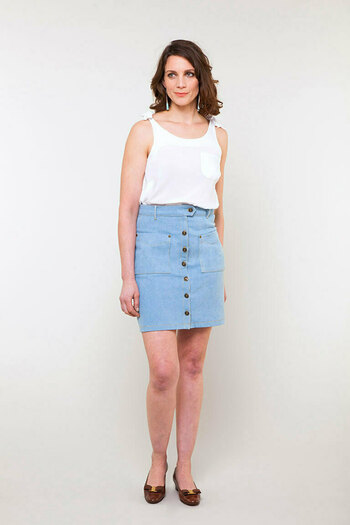 The Orla Skirt is a chic A-line mini designed to sit comfortably at your natural waist for a flattering fit. Princess seam panels on the front and back create sleek lines, while inseam pockets with a button closure add a functional, stylish touch. Fully lined with a faced waist for structure and comfort, Orla closes with an invisible zipper at the back for a clean, tailored look. Finished with a classic double-fold hem, this versatile skirt pairs effortlessly with everything from casual tees to dressy blouses, making it a timeless piece you’ll sew and wear on repeat.