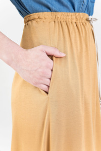 Any lightweight to medium-weight knit fabric with at least 25% stretch such as cotton, spandex, or rayon blends such as ponte knit.