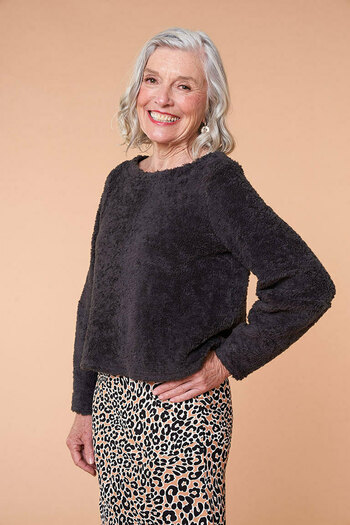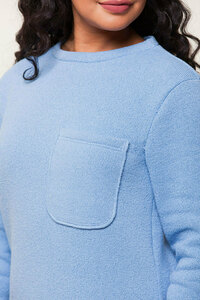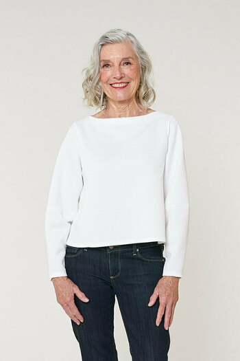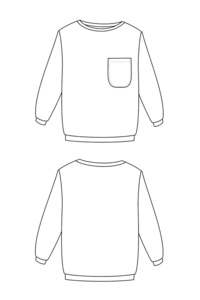 Medium to heavyweight sweatshirt knits with at least 5% stretch, such as sweatshirt fleece, French terry, terry cloth, or sweater knits. Optional: Ribbing for the sleeve cuffs, neckband, and hem band.