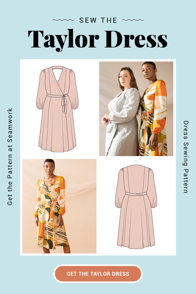 Taylor is a timeless woven wrap dress with long princess seams, full gathered sleeves finished with an elastic casing, and a tie at the waist. Trust us, the seaming on this pattern is worth the time it takes to sew the dress.