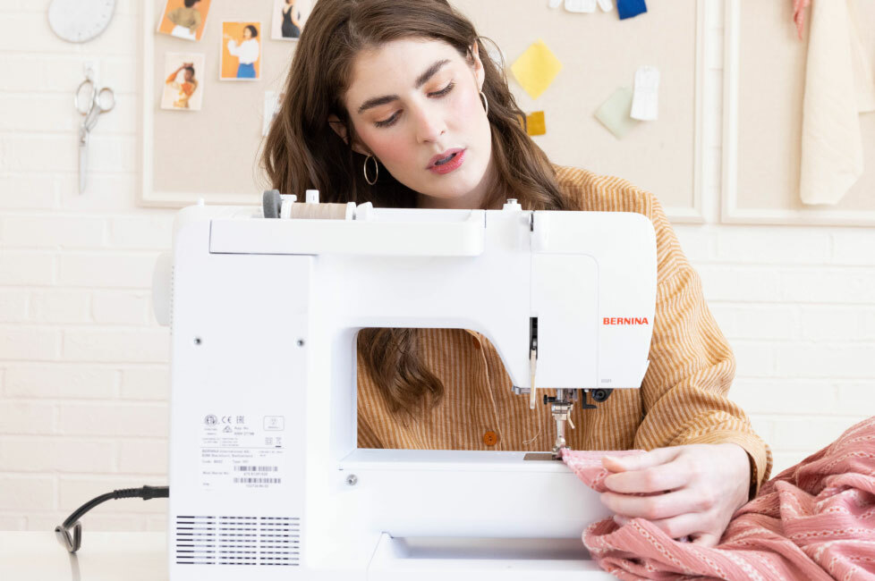 So, a supportive chair is probably the most important investment that you can make. Your back will definitely thank you later for having a supportive chair. I personally love having one with wheels. It makes it just so much easier to spin between my machine and my serger without constantly getting up and down. I have them both on one desk, so I have my machine right next to my serger, and then I have a spinning chair—or a wheelchair, rather—that I can then move between them really, really easily. That both speeds up your sewing—that’s a good tip for just speeding up your sewing—but at the same time, you can be really, really comfortable and just make your sewing area as functional as possible.