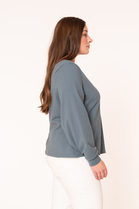 Medium weight knit fabrics with at least 20% stretch, such as French terry, ponte, double knit, and sweater knit.